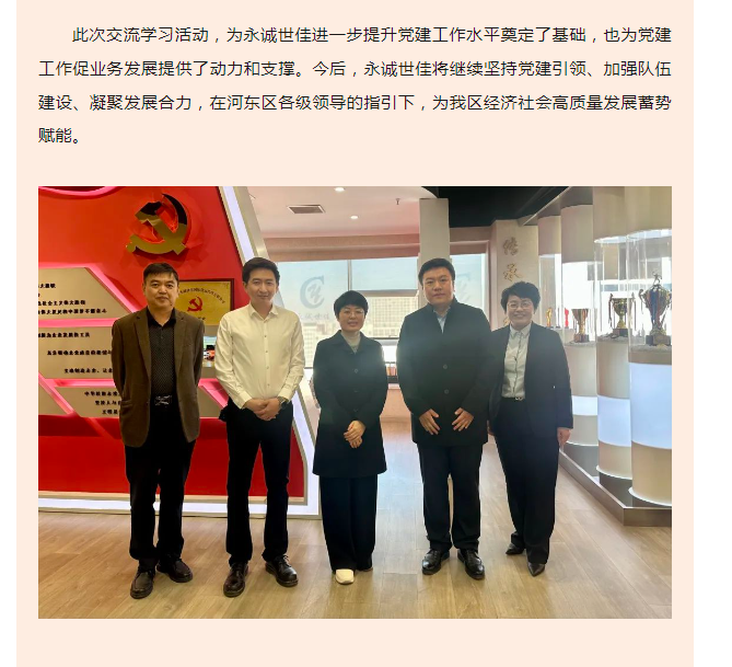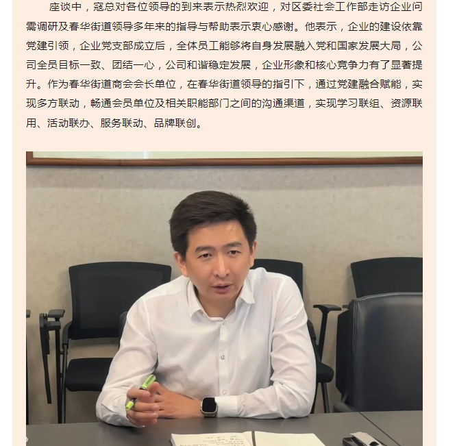 河?xùn)|區(qū)委社會工作部領(lǐng)導(dǎo)走訪春華街道商會會長單位永誠世佳